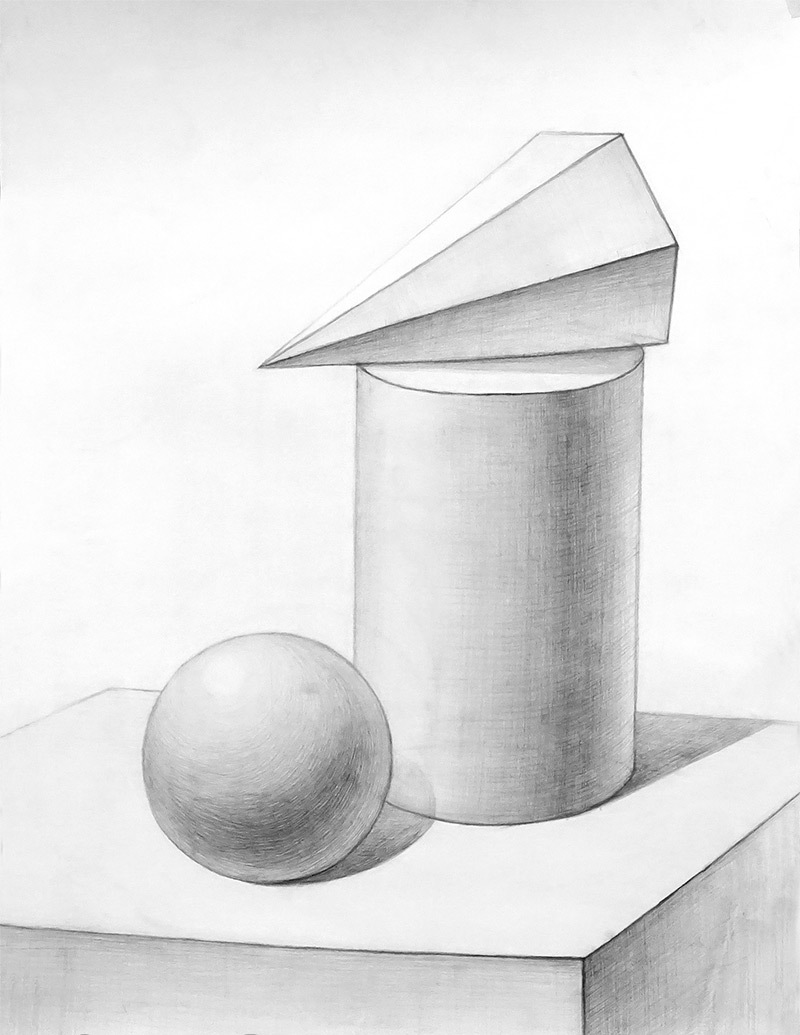 Po części konstrukcyjnej następuje modelowanie kreskowe. Na kursie rysunku architektonicznego szczegółowo analizujemy zasady i technikę nakładania pociągnięć na przedmioty geometryczne.